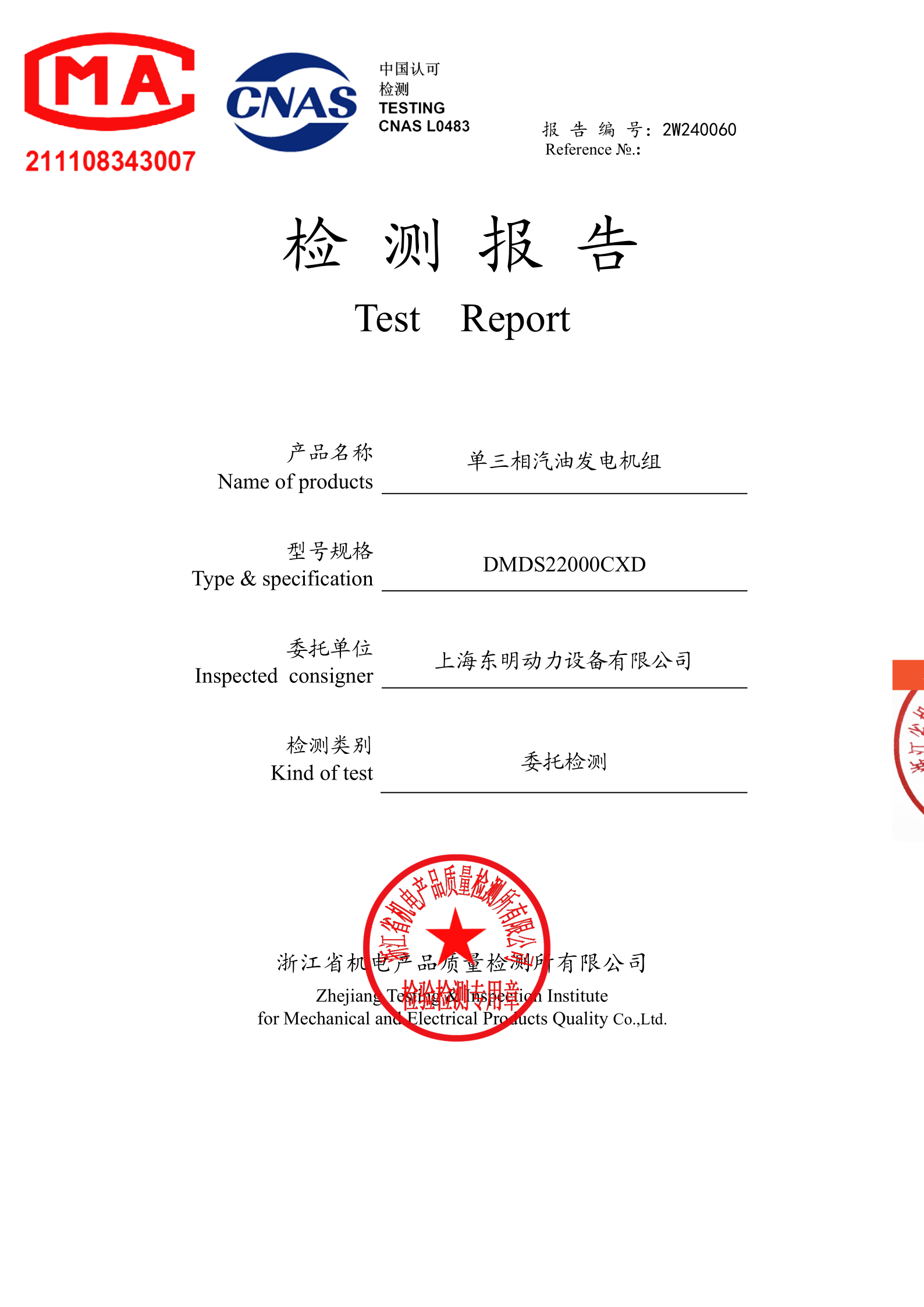 作為工業(yè)級發(fā)電設(shè)備,DMDS22000CXD 已完成專業(yè)機(jī)構(gòu)檢測,具備完整檢測報告,核心指標(biāo)均符合相關(guān)標(biāo)準(zhǔn)要求,可提供合規(guī)文件用于項目報備、驗收及資質(zhì)審核。