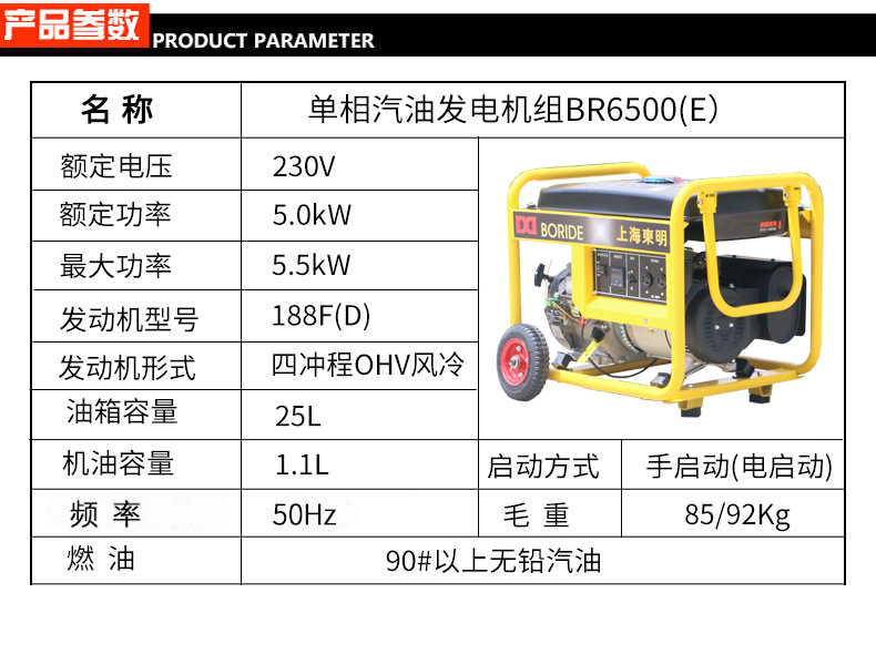 * 表示必填采購:5KW路政工程小型單相發電機組BR6500E