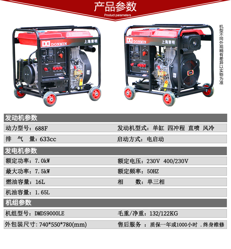 上海東明7KW單三相小型柴油發電機組 DMDS9000LE