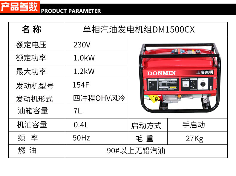* 表示必填采購:單相1kW小型汽油發(fā)電機組DM1500CX