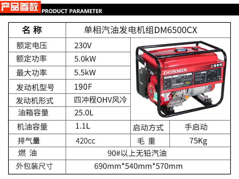 * 表示必填采購:單相 5kW小型汽油發電機組 DM6500CX手動